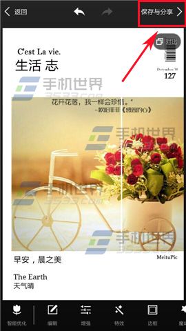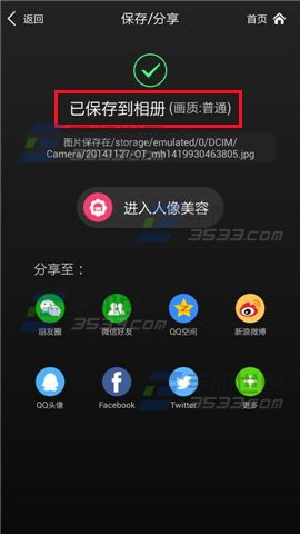 4)在右上方点击【保存与分享】,在界面即可显示已保存到相册。(如下图)