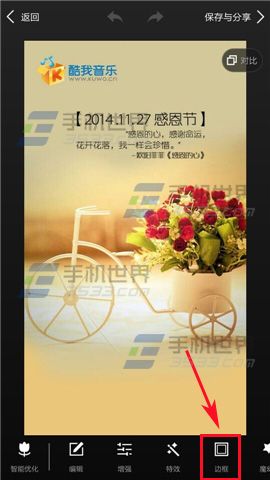2)在相册选择照片点击一下,在界面点击【边框】。(如下图)