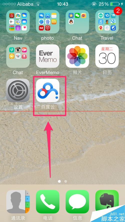 1、打开自己iPhone应用程序界面中的“百度云”客户端,点击进入下一步。