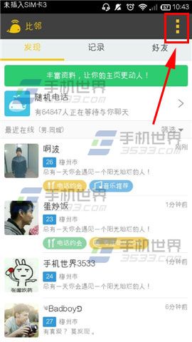 1)打开【比邻】app,点击右上角的【...】。(如下图)