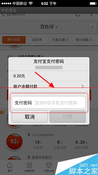 6、提交合买订单后会进入支付阶段 —— 在这里填写支付密码支付 。
