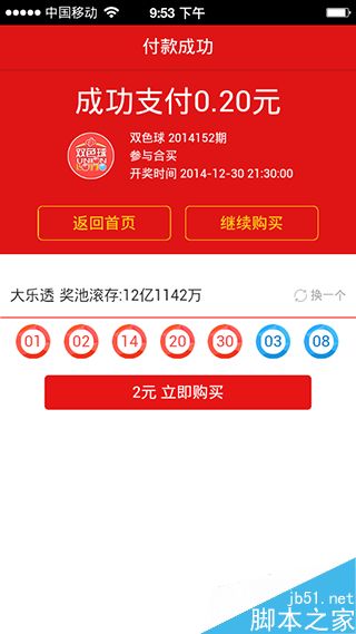 7、付款成功 —— 这样就参与合买OK —— 点击返回首页 。