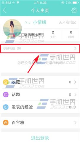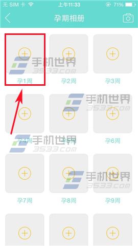 2)进入个人主页点击【孕照相册】,进入界面选择孕周点击一下。(如下图)