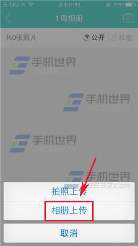 3)在右上方点击【照相机】,弹出窗口点击【相册上传】。(如下图)