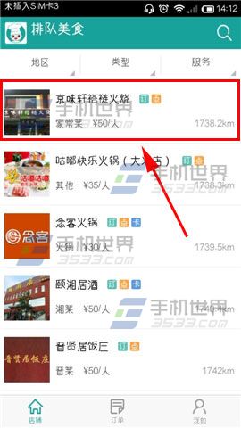 1)打开【排队美食】,点击一家餐厅/店铺。(如下图)