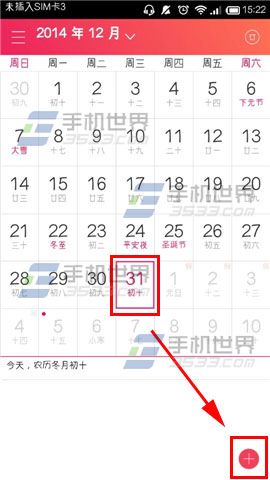 1)打开【联想日历】,点击一个需要记录的【日期】,接着点击右下角粉色的【+】按钮。(如下图)