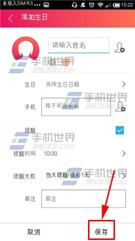 3)再来看看【第二个】图标,第二个图标可以添加纪念日的提醒,设置好时间跟备忘内容点击【保存】;【第三个】看图标是个生日蛋糕,没错,这个就是记录TA生日提醒的备忘录,把各种提醒分类分好方便以后查看哦。(如下图)