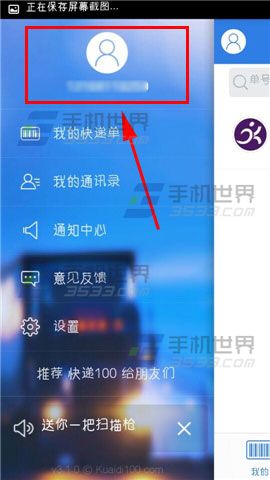 1)打开【快递100】,点击左上角的【人像】。(如下图)