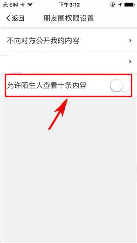 我们还可以设置允许陌生人查看十条朋友圈内容。类似于微信APP。但是,为了保护自己的隐私不被外人所了解,我们不妨将其关闭。