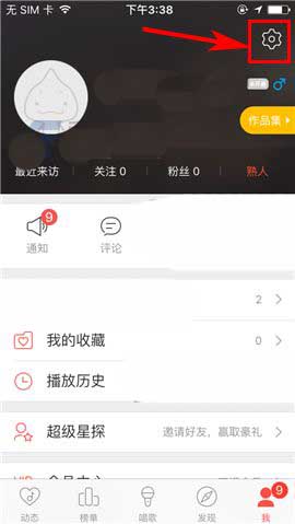 1)打开唱吧APP,首先点击首页右下角的【我】,随后再点击界面右上角的【设置】图标;(如下图)