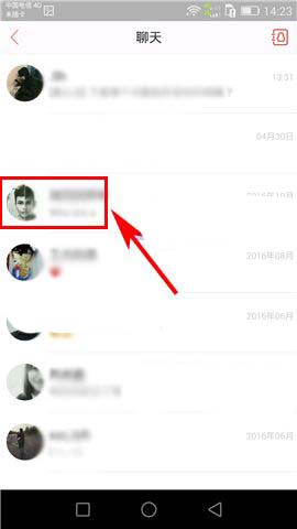 2)接着在聊天会话列表中选择相关的用户(或是点击界面右上角处的“用户”图标选择相关用户),然后点击与其聊天界面中箭头所指的【+】按钮;(如下图)