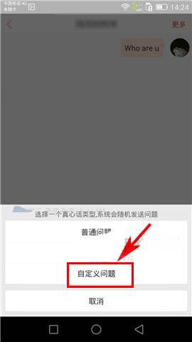 3)随后选择【真心话】,然后再点击【自定义问题】;(如下图)