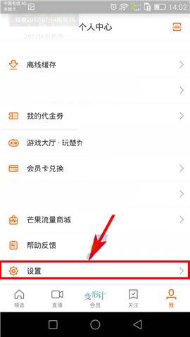 1)点开芒果TV,首先点击首页右下角处的【我】,然后上拉界面进入【设置】;(如下图)