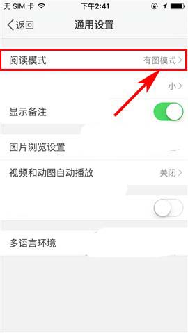 2)接着点击【通用设置】,随后再点击【阅读模式】;(如下图)