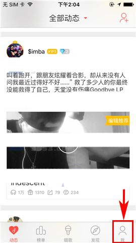 1)点开唱吧APP,首先点击首页右下角处的【我】,然后上滑界面进入【个性装扮】;(如下图)