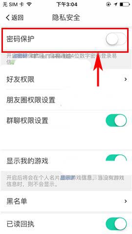 2)接着点击【隐私安全】,然后开启【密码保护】功能;(如下图)