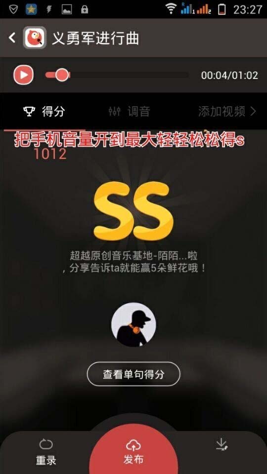 3、轻轻松松获得s,然后发表作品就得了5朵鲜花 (每天可以发五首作品可以获得25朵鲜花,普通用户登录3朵鲜花,绿钻用户登录8朵鲜花,邀请好友3朵鲜花)