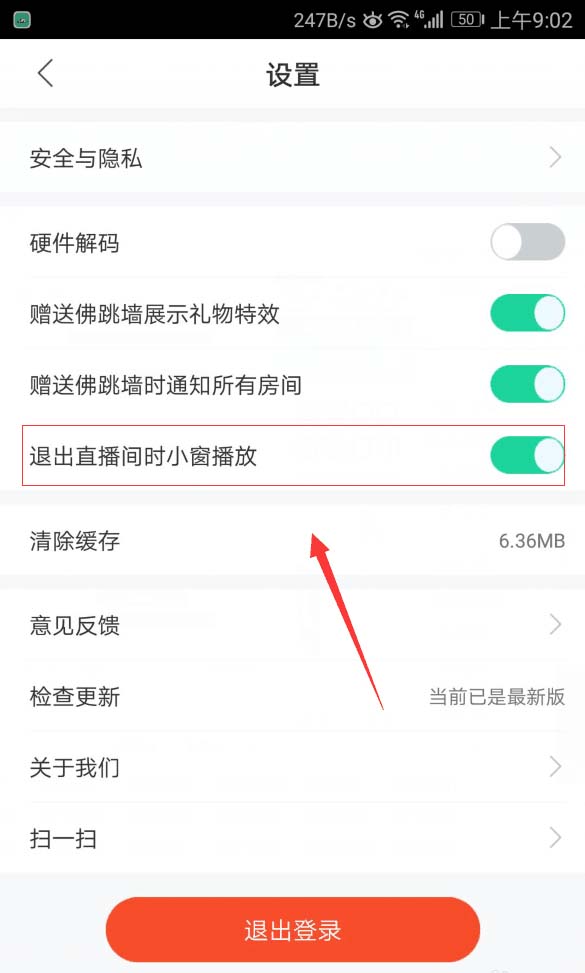 6、接着我们将“退出直播间时小窗播放”关闭就可以了,如图。