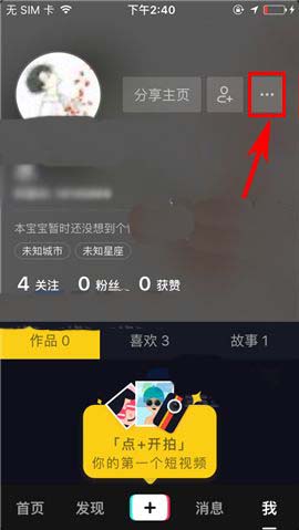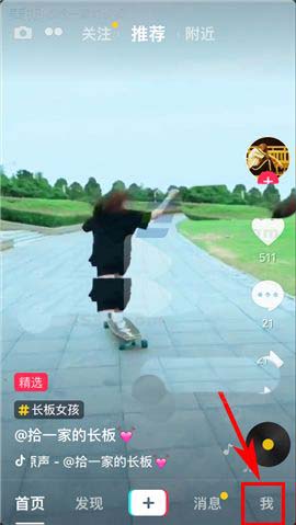 1)打开抖音短视频APP,首先点击首页右下方处的【我】,随后点击界面中箭头所指处的【...】图标;(如下图)