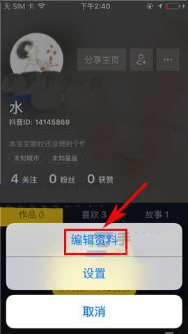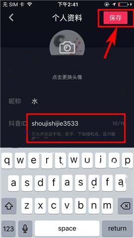 2)然后点击【编辑资料】,接着在点击“抖音ID”,并编辑自己所想的ID号后再点击【保存】即可修改。切记,抖音ID现只能修改一次哦~小伙伴们在修改之前可一定要想清楚。(如下图)