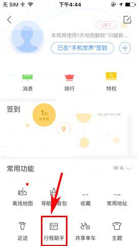1)打开百度地图APP,首先点击地图界面中的“用户”图标,然后上滑界面进入【行程助手】;(如下图)