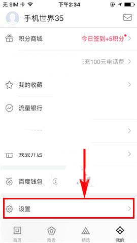 1)点开百度糯米APP,首先点击首页右下角处的【我的】,然后上滑界面进入【设置】;(如下图)