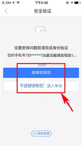 3)然后选择相关的操作方式,这里小编以“能接收短信”为例,随后再在输入所获取到的手机验证码后点击【确定】;(如下图)