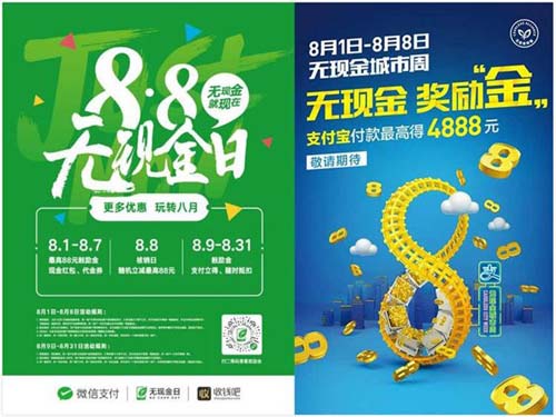 微信方面的活动时间是从8月1日起持续一整月:1日至7日,用户消费可获得鼓励金等优惠;8日当天用户可核销累计鼓励金等优惠用于消费,还可享受当日消费随机立减;而8.8之后,用户消费仍可获得鼓励金,并在一定时间段内核销。此外,用户还可以进入“无现金生活”小程序,领取更多商家的优惠券。