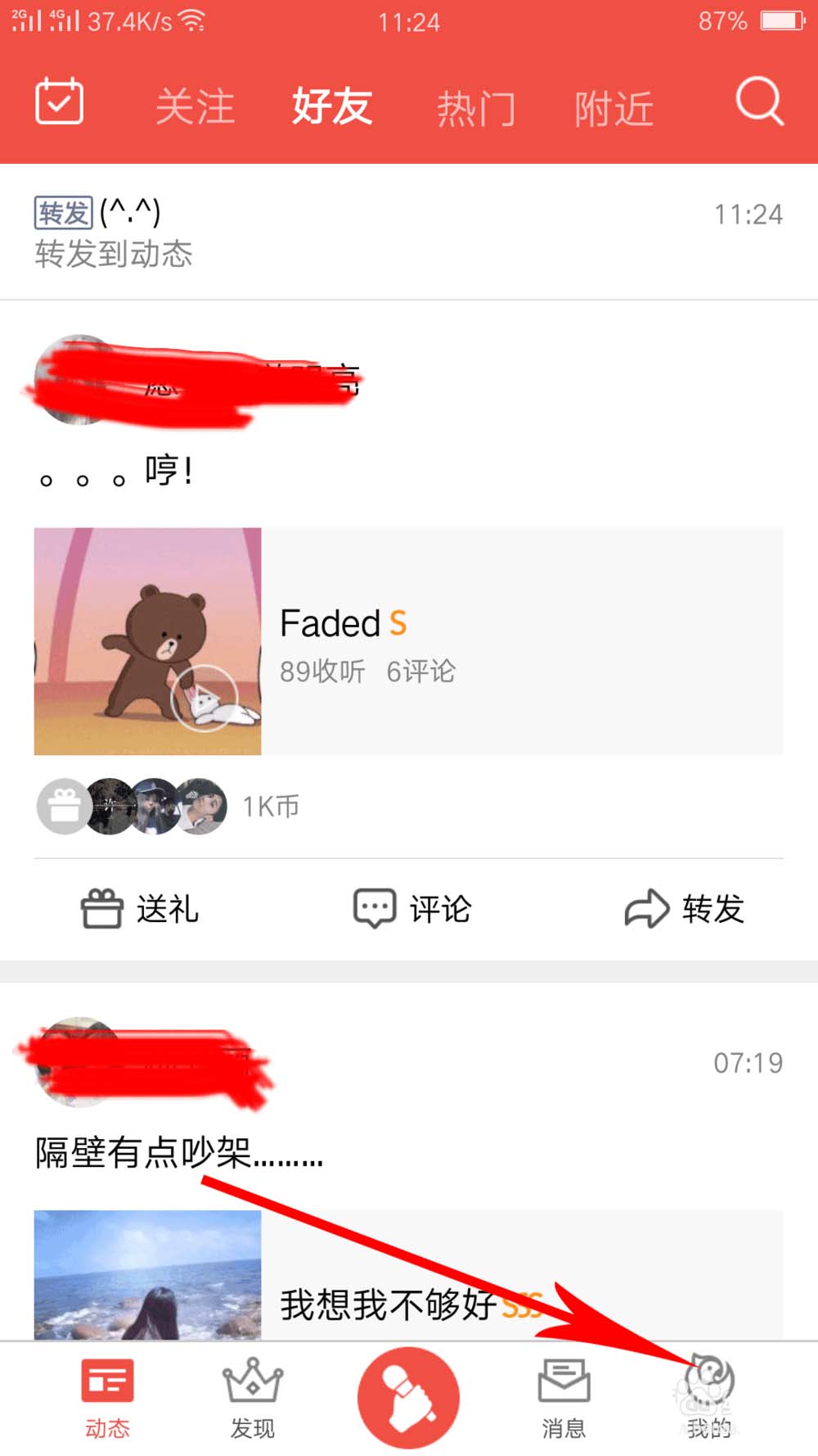 1、打开手机版的全民K歌,看到这个主页,点击【我的】
