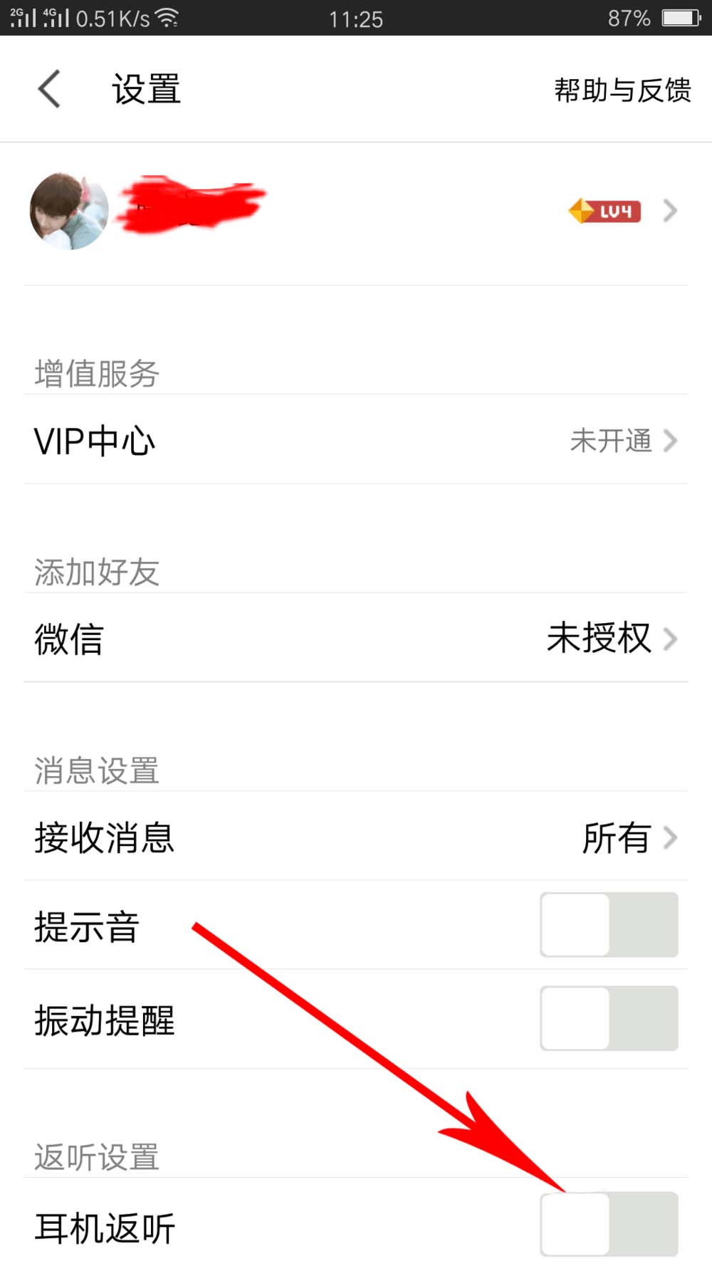 3、向下滑动一点点就能看到有一个【耳机反听】