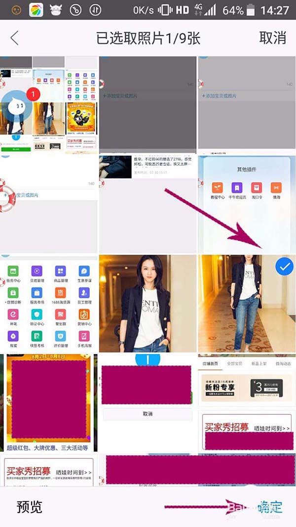 注意:手机千牛微淘发九宫格图片,顺序是倒叙的;也就是说第1张上传的图片实际上是第9张
