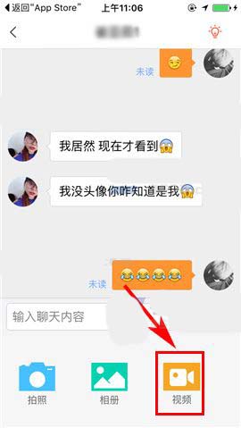 2)接着点击聊天界面右下方处的【+】按钮,随后选择【视频】;(如下图)