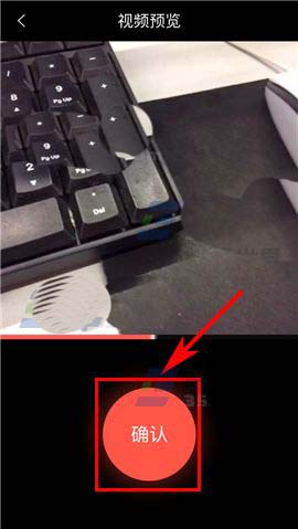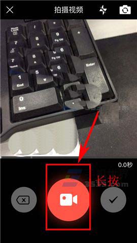 3)然后【长按】屏幕中的红色圆形按钮进行视频录制,在结束拍摄时松开按钮即可,随后再点击【对勾】图标;(如下图)