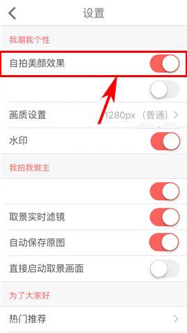 2)最后再开启【自拍美颜效果】就可以啦!(如下图)