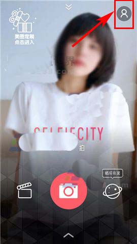 1)点开潮自拍APP,首先点击首页右上角处的个人用户图标,随后再进入【设置】;(如下图)