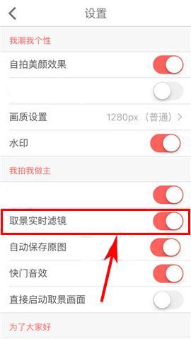 2)最后开启【取景实时滤镜】功能即可。(如下图)
