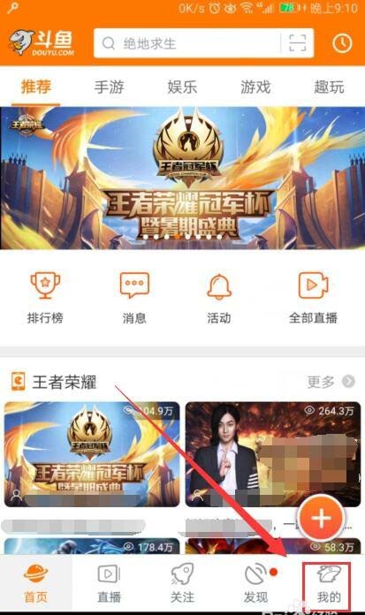 1、首先,我们打开我们的斗鱼TV,来到了斗鱼TV首页,我们点击“我的”,如图所示。