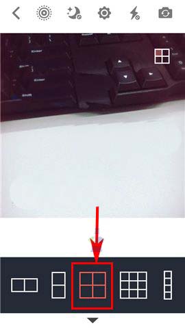 2)接着向左划动比例模式并选择“四宫格”,随后点击屏幕中的【拍摄】按钮,连续拍摄四次便可获得四宫格照片啦~(如下图)