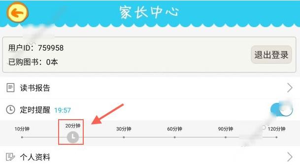 2、接着设置【定时提醒】的时间后,系统就可倒计时,等过了设置的时候时,就会提醒你读书或停下读书休息一下哦。