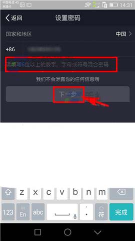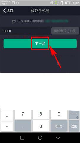 3)然后在核对好相应的手机号码后输入密码,点击【下一步】,最后再输入所获取的验证码,点击【下一步】即可。(如下图)