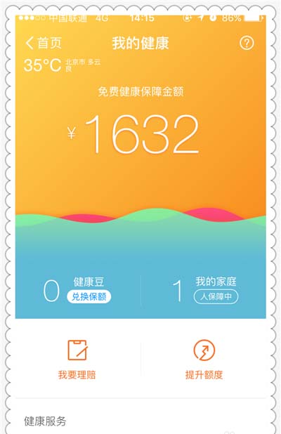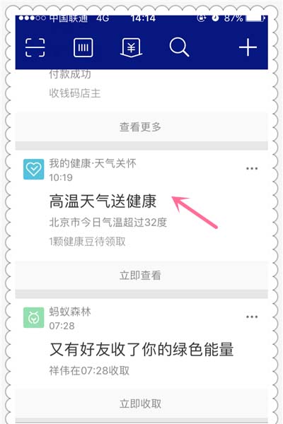 1、通过你在支付宝钱包里边的行为,比如线下消费,你会得到72元的健康保障金额,这是一份保险金额,现在高温天气比较多,也会受到免费的保障金额。