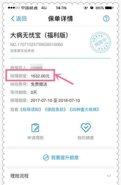 以上就是支付宝查看我的健康保险的教程,每次现在消费都会获得一笔保额的。