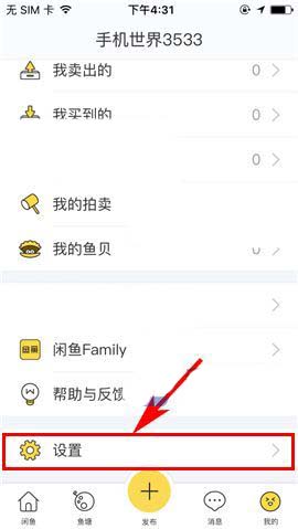 1)点开闲鱼APP,首先点击首页右下角处的【我的】,随后上划界面进入【设置】;(如下图)