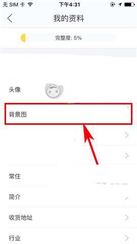 2)接着点击【个人资料设置】,然后选择【背景图】;(如下图)