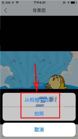 3)随后点击【更改背景图】,接着再选择照片来源,这里小编以“从相册中选取”为例;(如下图)