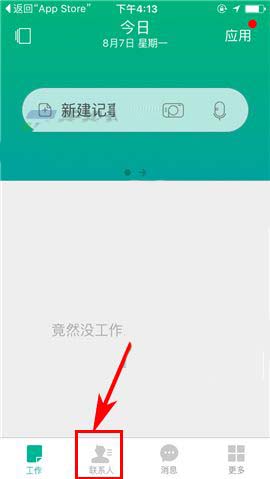1)点开盯盯APP,首先点击工作界面下方的【联系人】,然后从中选择自己所创的相关团队;(如下图)