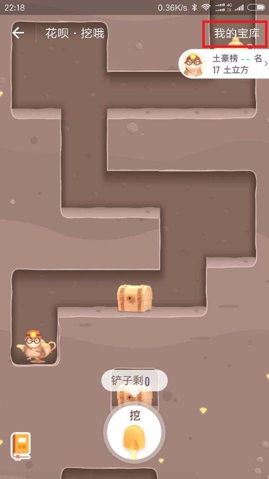 7、用完了铲子之后可以在右上角点击“我的宝库”
