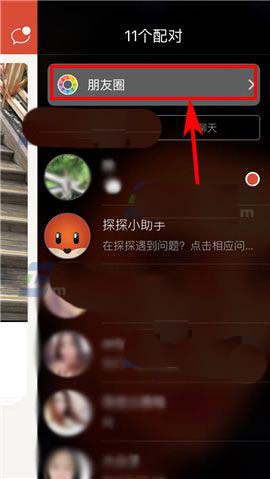 1)打开探探APP,首先点击首页右上角处的“消息”图标,然后进入【朋友圈】;(如下图)