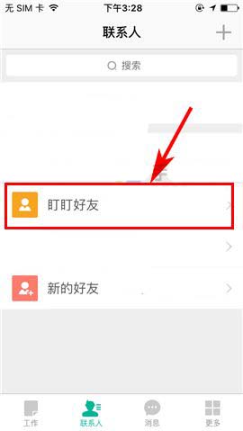 1)点开盯盯APP,首先选择首页中的【联系人】列表,接着找到【盯盯好友】;(如下图)