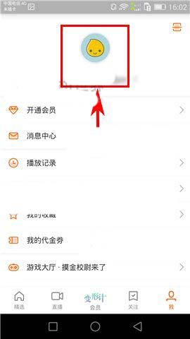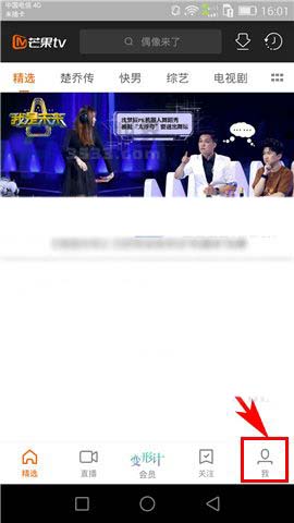 1)点开芒果TV,首先点击首页右下角处的【我】,然后再点击屏幕中的个人用户头像;(如下图)